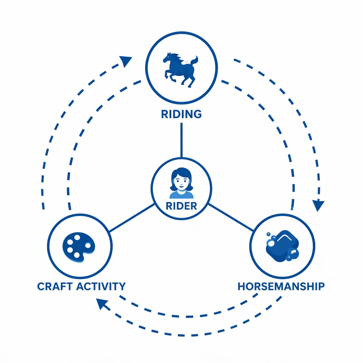 Kids rotate through three engaging stations: riding, horsemanship (learning about horse care), and a fun craft activity. This keeps everyone active and involved throughout the event.