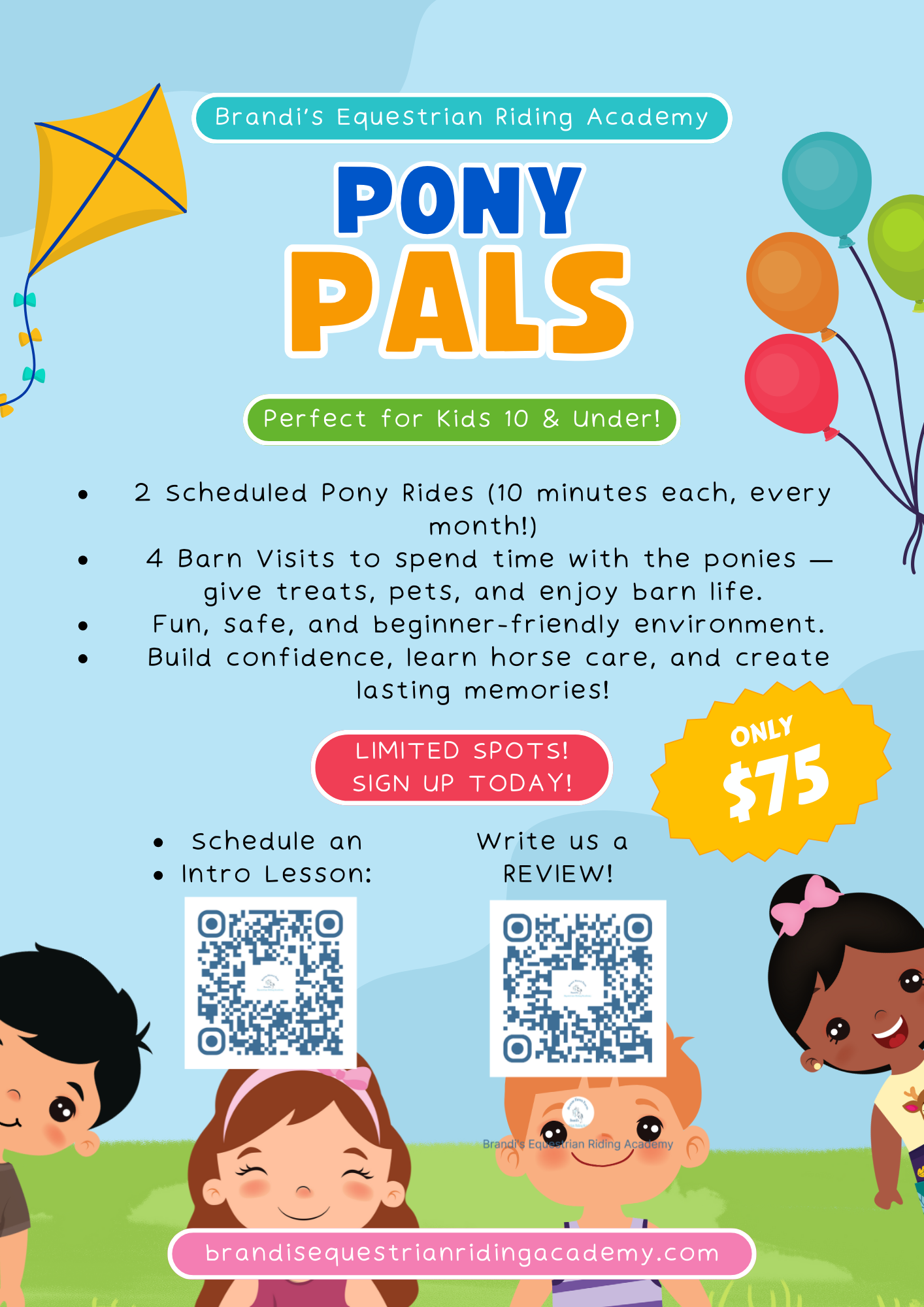 Absolutely loved Pony Pals — my child can’t stop talking about the ponies! Friendly staff and a safe, fun barn.